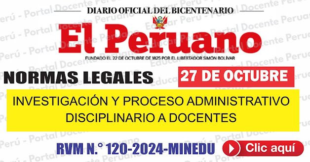 N° 091-2021-MINEDU que aprueba el Documento Normativo denominado “Disposiciones que regulan la investigación y el proceso administrativo disciplinario para profesores, en el marco de la Ley N° 29944, Ley de Reforma Magisterial”.